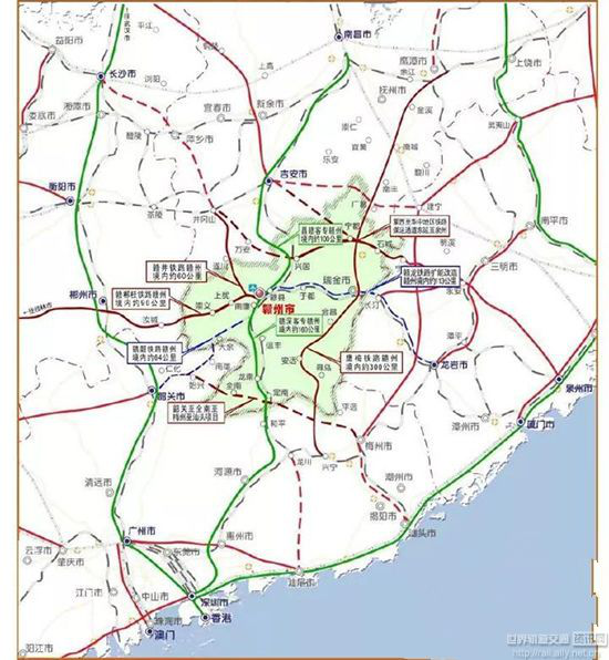 贛深高鐵將北接正在建設(shè)的昌吉贛客運專線。建成后,贛州至廈門、深圳、廣州、南昌等地均可進入2小時經(jīng)濟圈。