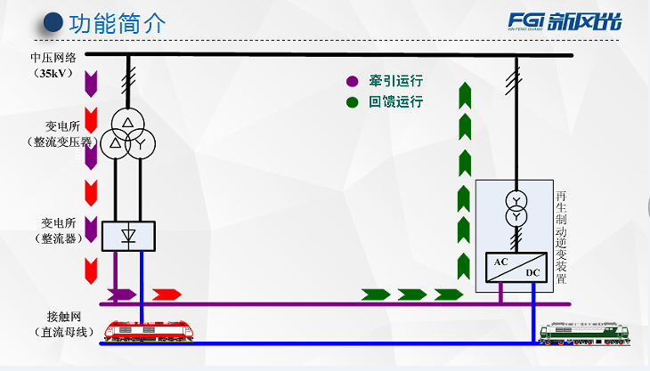 這項(xiàng)技術(shù),就是將機(jī)車上的牽引電動(dòng)機(jī)在制動(dòng)時(shí)產(chǎn)生的能量經(jīng)過逆變裝置回饋到電網(wǎng)。