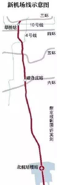 新機(jī)場(chǎng)線全長(zhǎng)39.05公里,共設(shè)3座車站:北航站樓站、磁各莊站、草橋站,全部為地下站。