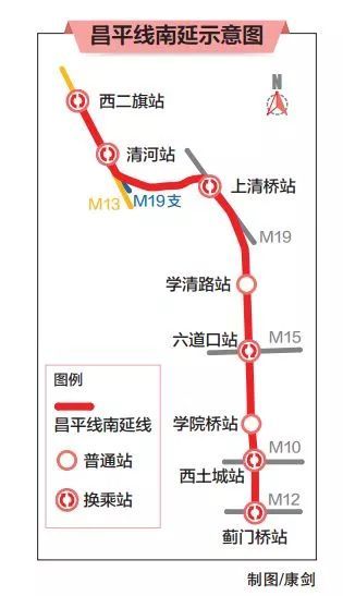 根據(jù)目前計(jì)劃,昌平線將從西二旗站南延至薊門橋站,自北向南設(shè)置7座車站,計(jì)劃于2020年建成通車。