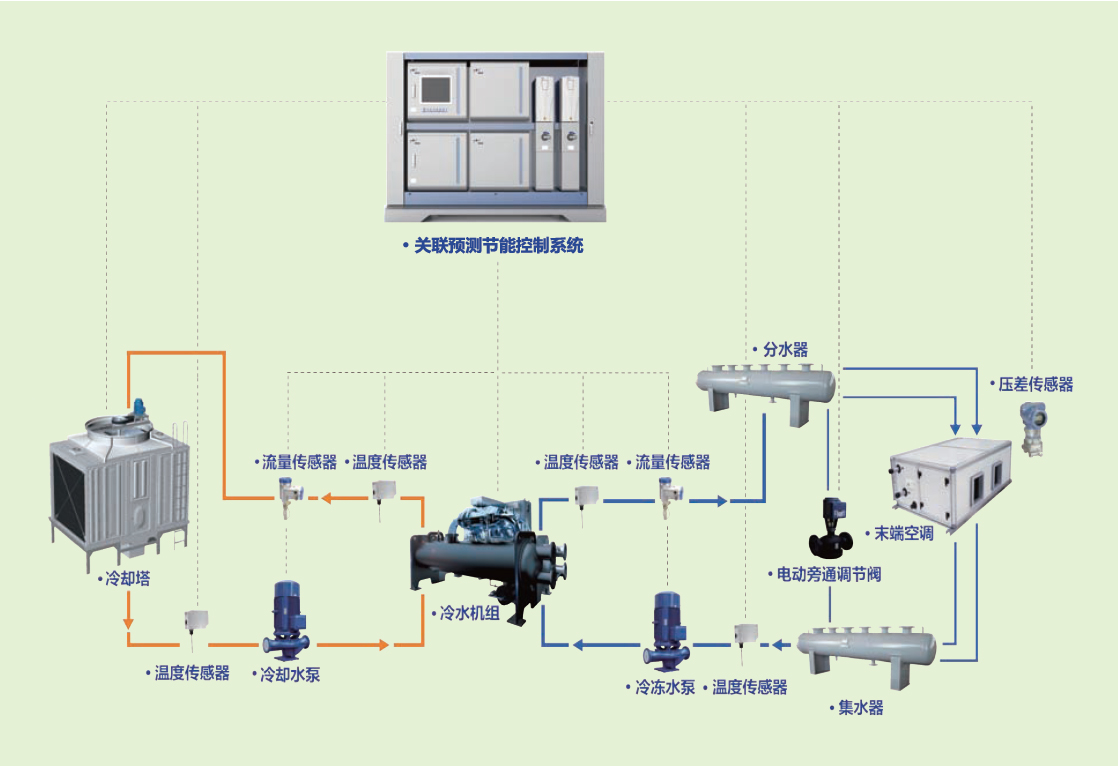 針對本項目的特點,星達公司配備有類似工程經驗的專業(yè)人員,將為其增設一套神舟北極關聯預測節(jié)能控制系統,通過建立中央空調冷熱源主要設備的關聯控制模型,根據末端負荷及室外環(huán)境變化,預測出下一時段空調系統的冷量需求,對制冷系統進行前饋主動控制,消除冷熱源系統大滯后特性的影響;采用能耗自尋優(yōu)關聯控制技術,自動尋找各主要設備間的最佳運行匹配關系和節(jié)能控制參數,實現系統整體能效最優(yōu);同時, 將能耗自尋優(yōu)算法得到的各設備最佳運行匹配參數,通過滾動優(yōu)化算法在線更新關聯數據庫,提高控制模型的準確性,最終實現制冷系統的高效穩(wěn)定節(jié)能運行,為用戶提供了最優(yōu)的控制方案及節(jié)能產品,獲得了合作方的高度認可與肯定。