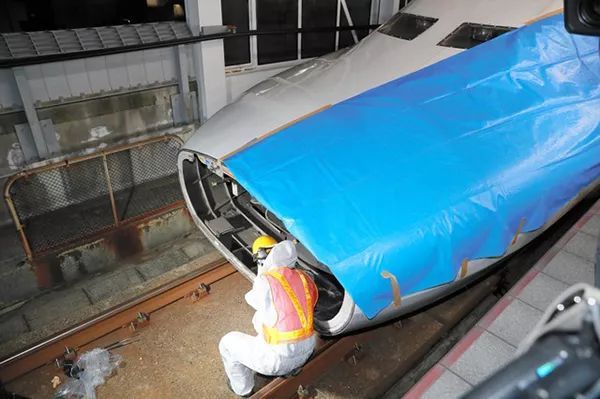 15日凌晨,事故車輛移至博多綜合車輛所,破損的列車車頭部分將進(jìn)行修理。