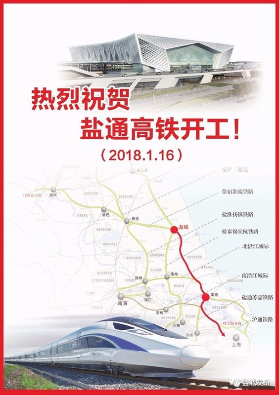 前段時(shí)間鹽通高鐵也開(kāi)工了 1月16日,時(shí)速350公里/小時(shí)的鹽通鐵路正式開(kāi)工。