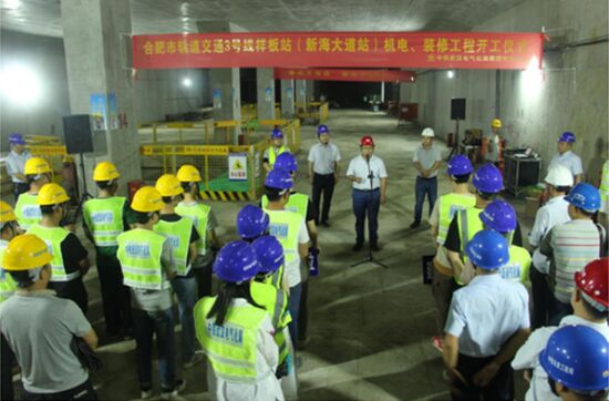 (記者 常魁星 通訊員 岳一夢 雒亞琴)6月22日,安徽省合肥市軌道交通3號線機電裝修工程開工儀式在中鐵武漢電氣化局上海分公司合肥市軌道交通3號線工程機電系統(tǒng)(風、水、電)安裝及裝修總承包項目7標段樣板站(新海大道站)舉行,標志著合肥市軌道交通3號線機電裝修工程正式開工。合肥城市軌道交通有限公司機電一處處長楊風雷、中鐵武漢電氣化局上海分公司副總經理金舟、監(jiān)理單位代表、施工單位代表,風水電裝修班組代表等50余人參加開工儀式。