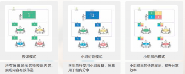 n 多屏調(diào)度系統(tǒng):課堂展示模式一鍵切換——授課模式、小組討論模式、小組展示模式,師生內(nèi)容輕松流轉(zhuǎn),支撐研討式教學(xué)。