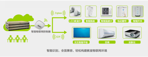 教室智能控制中心,支持Zigbee、紅外技術(shù),能夠智能識(shí)別控制LED教室燈、交互智能平板、空調(diào)等物聯(lián)網(wǎng)設(shè)備。