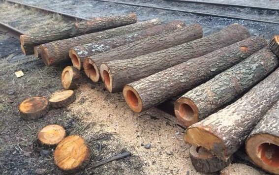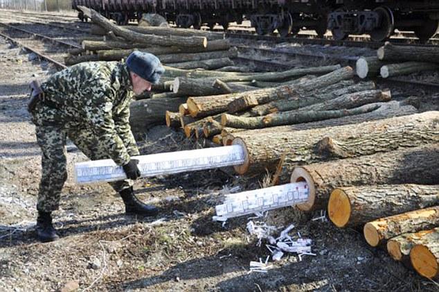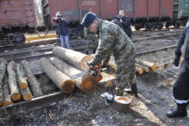 在烏克蘭北部沃倫州一鐵軌上整齊排放了一堆中間被鑿空的木材,這一塊的鐵路也被暫時(shí)封閉了,一輛開往波蘭的火車正停在旁邊,而此時(shí)有大批的警察正在把車上的木材卸下來。這異常的一幕,引得附近居民紛紛圍觀。