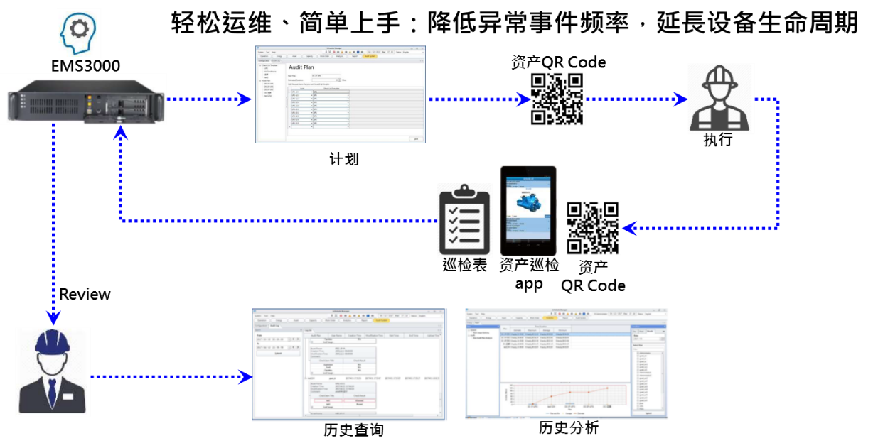 數(shù)據(jù)中心的故障如果是因為出現(xiàn)了斷電或人為錯誤操作等所導(dǎo)致,就比較容易進(jìn)行檢查和恢復(fù)。但如果是數(shù)據(jù)中心的故障是在平常運(yùn)行過程中而慢慢產(chǎn)生的呢?一個數(shù)據(jù)中心通常布置相當(dāng)多的傳感器、驅(qū)動器及設(shè)備,而采集的數(shù)據(jù)也相當(dāng)巨量,如一個傳感器一秒抓取一次,那一年就有3千萬筆,那如果有100個就有31億筆數(shù)據(jù),而這些數(shù)據(jù)怎么轉(zhuǎn)換成信息,而信息再通過分析而產(chǎn)生管理者需要的報表,那就需要DCIM系統(tǒng)中的自動故障檢測和診斷(Automated Fault Detection and Diagnostics簡稱AFDD)的功能,而診斷數(shù)據(jù)中心的故障就像是看病一樣,根據(jù)不同的指標(biāo),并通過經(jīng)驗建立分析規(guī)則來判斷可能的故障位置,并提醒管理者提前進(jìn)行維護(hù),達(dá)到預(yù)防保養(yǎng)的目的,也增進(jìn)了數(shù)據(jù)中心的可度靠。另一個就是移動巡檢的功能,通過系統(tǒng)建立一個檢查對象并產(chǎn)生QR code并將貼在檢查對象,可使用手機(jī)掃描QR code即可將相關(guān)的檢查記錄上傳至系統(tǒng),系統(tǒng)即可對此進(jìn)行分析,而上層管理者也可對系統(tǒng)進(jìn)行核對,減少紙本的記錄及增加分析的速度。