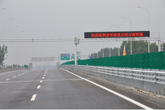 首都地區(qū)環(huán)線高速公路編號為G95,線路全長940公里,首環(huán)高速公路(通州-大興段)工程線路全長38公里,總投資額122億元,是中國交建在北京的首個(gè)PPP項(xiàng)目。中交一公局交通工程有限公司承建首環(huán)高速公路第七分部工程,線路長度27.644公里,工程總造價(jià)約3.1億元,工程項(xiàng)目包含5個(gè)單位工程,63個(gè)分部工程,731個(gè)分項(xiàng)工程。為交安工程波形梁護(hù)欄105.62公里,隔離柵52.6公里,標(biāo)志牌375處,標(biāo)線6.28萬平米,防眩板26.78公里,聲屏障5.94公里;機(jī)電工程收費(fèi)站3座,收費(fèi)車道33條,通信管道及光電纜敷設(shè)32.44萬米、監(jiān)控設(shè)施147套、照明設(shè)施496套、供配電設(shè)施15套及10KV外電引入;綠化工程喬木1.95萬株,灌木121.36萬株,地被26.74萬平方米。