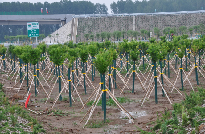 創(chuàng)新六是綠化施工標(biāo)準(zhǔn)化。在綠化施工中,項(xiàng)目引進(jìn)小型旋耕機(jī)對作業(yè)面進(jìn)行翻松處理,提高苗木成活率;積極推廣綠化工程標(biāo)準(zhǔn)化施工,在大型場區(qū)布設(shè)灌溉網(wǎng),喬灌木栽植完畢后,進(jìn)行人工篩土,將大粒徑土料剔除,篩料混合地被草籽,平整場地后撒勻,增加了景觀效果。