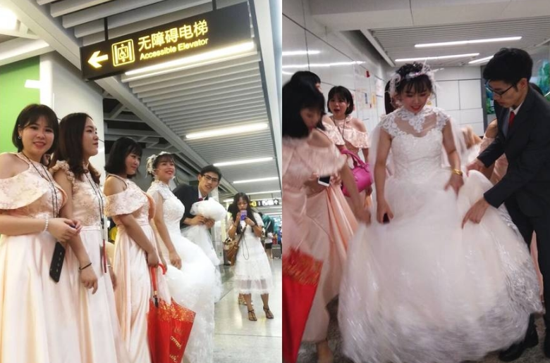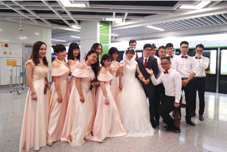 2018年7月17日?qǐng)?bào)道,15日,廣西南寧,一對(duì)新人以及伴娘伴郎集體坐地鐵去酒店舉辦婚禮,網(wǎng)友紛紛表示有創(chuàng)意,環(huán)保低碳。