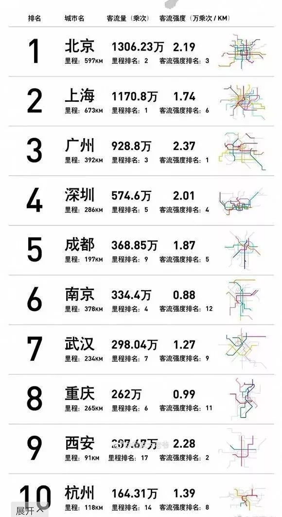 最后,地鐵對(duì)一個(gè)城市房地產(chǎn)的撬動(dòng)作用。一份地鐵里程榜顯示,地鐵里程能上榜的城市非富即貴,都是中國(guó)一線城市和新一線城市。這是因?yàn)榈罔F提高了單位面積內(nèi)的人流,同時(shí)加速了人口的快速和低成本流動(dòng),進(jìn)而承載更多的經(jīng)濟(jì)價(jià)值。