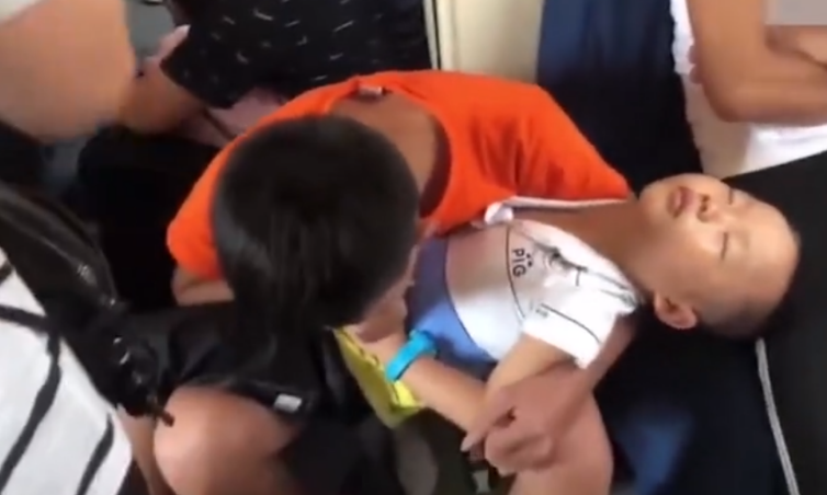 2018年8月26日報道,近日,由廣州開往拉薩的Z264次列車上發(fā)生暖心一幕:一家四口由于沒有買到座票,就坐在地上。14歲的小哥哥一直將熟睡的弟弟抱在身上。他說到家要坐5個小時,愿意一直這樣抱著弟弟,不覺得累。