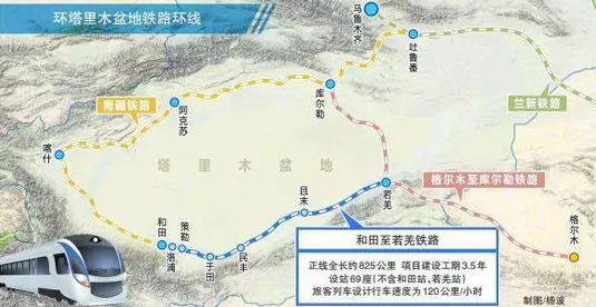 和田至若羌鐵路是國(guó)家“十三五”重點(diǎn)建設(shè)項(xiàng)目,線路自喀什至和田鐵路的和田站接軌,途經(jīng)和田、洛浦、策勒、于田、民豐、且末、若羌等市縣,終點(diǎn)接入庫(kù)爾勒至格爾木鐵路的若羌站,正線全長(zhǎng)約825千米。設(shè)站69座(不含和田站、若羌站),初期開(kāi)放19座。鐵路設(shè)計(jì)等級(jí)為國(guó)鐵Ⅰ級(jí),旅客列車(chē)設(shè)計(jì)行車(chē)速度為120公里/小時(shí),規(guī)劃遠(yuǎn)景年輸送能力為客車(chē)8對(duì)/日,貨運(yùn)1500萬(wàn)噸/年。項(xiàng)目總投資221.5億元,其中工程投資213.6億元,機(jī)車(chē)車(chē)輛購(gòu)置費(fèi)7.9億元,項(xiàng)目建設(shè)工期3.5年。