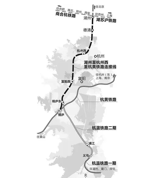 2018年8月6日,湖州至杭州西至杭黃鐵路連接線工程規(guī)劃選址意見(jiàn)書(shū)獲浙江省住建廳批復(fù)。