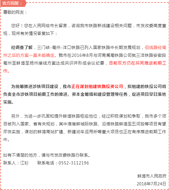 蚌埠市市長熱線服務(wù)中心對此進(jìn)行了回復(fù),