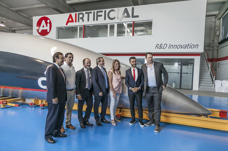 左二至右依次為:Airtificial聯(lián)合創(chuàng)始人和主席Rafael Contreras、HyperloopTT首席運(yùn)作官Andres De León、Black Toro Capital管理合伙人兼Airtificial董事會(huì)成員Ramón Betolaza、西班牙安達(dá)盧西亞自治區(qū)政府主席Susana Díaz、HyperloopTT主席和聯(lián)合創(chuàng)始人Bibop Gresta、HyperloopTT聯(lián)合創(chuàng)始人和首席執(zhí)行官Dirk Ahlborn