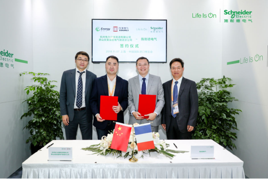 中國上海,2018年11月14日——近日,全球能效管理與自動化領(lǐng)域數(shù)字化轉(zhuǎn)型的領(lǐng)導(dǎo)者施耐德電氣與杭州電力設(shè)備制造有限公司蕭山欣美成套電氣制造分公司(以下簡稱“杭州欣美”)于中國國際進(jìn)口博覽會上,正式簽署全新戰(zhàn)略合作協(xié)議。立足于多年合作與信任,杭州欣美將基施耐德電氣數(shù)字化低壓成套設(shè)備,全面拓展高端市場業(yè)務(wù)。施耐德電氣高級副總裁、能效樓宇中國區(qū)負(fù)責(zé)人謝佶雋與杭州電力設(shè)備制造有限公司蕭山欣美成套電氣制造分公司總經(jīng)理許金彤代表雙方簽約。