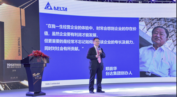 臺(tái)達(dá)發(fā)言人暨企業(yè)永續(xù)發(fā)展資深協(xié)理周志宏先生代表領(lǐng)獎(jiǎng),并應(yīng)邀以“臺(tái)達(dá)的綠色影響力”為題做分享。他指出,臺(tái)達(dá)作為企業(yè)公民,長(zhǎng)期關(guān)注氣候變遷,積極參與國(guó)際節(jié)能倡議及相關(guān)活動(dòng),并從自身做起實(shí)踐企業(yè)自主減碳。臺(tái)達(dá)于自有廠房、建筑物、數(shù)據(jù)中心實(shí)施節(jié)電方案以降低用電密集度,并于2017年以科學(xué)方法訂定減碳目標(biāo)(SBT),提出2025年碳密集度下降56.6%的目標(biāo),成為中國(guó)大陸及臺(tái)灣地區(qū)第一家、全世界第87家,通過(guò)科學(xué)基礎(chǔ)目標(biāo)倡議組織符合性審核的企業(yè),為行業(yè)做出表率。此外,臺(tái)達(dá)作為推廣綠色建筑的先鋒,自2006年起打造綠色廠辦、捐贈(zèng)綠色學(xué)校,至今已在全球范圍內(nèi)擁有27座綠色建筑,并以“推己及人”的方式向大眾推廣建筑節(jié)能的經(jīng)驗(yàn),為共同營(yíng)造低碳城市貢獻(xiàn)力量。