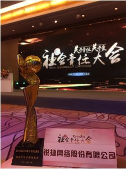 圖:銳捷網(wǎng)絡(luò)榮獲2018社會(huì)責(zé)任“優(yōu)秀品牌獎(jiǎng)”