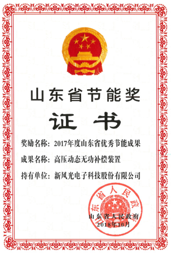 新風光公司研制的高壓動態(tài)無功補償裝置為改善山東省電網(wǎng)質(zhì)量,打造智能電網(wǎng)、智慧電網(wǎng),助推山東省節(jié)能減排,做出了貢獻。此次獲得山東省人民政府表彰,是對新風光公司多年來堅持節(jié)能技術研究開發(fā)與推廣工作的充分肯定。