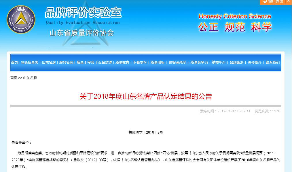 為貫徹落實(shí)山東省委、省政府新時(shí)期對(duì)質(zhì)量和品牌建設(shè)的新要求,進(jìn)一步推動(dòng)新舊動(dòng)能轉(zhuǎn)換和“四新”“四化”發(fā)展,按照《山東省人民政府關(guān)于貫徹國(guó)務(wù)院<質(zhì)量發(fā)展綱要(2011-2020年)>實(shí)施質(zhì)量強(qiáng)省戰(zhàn)略的意見(jiàn)》(魯政發(fā)〔2012〕30號(hào)),依據(jù)《山東名牌認(rèn)定管理辦法》,山東省質(zhì)量評(píng)價(jià)協(xié)會(huì)會(huì)同有關(guān)團(tuán)體單位組織開展了2018年度山東名牌產(chǎn)品的認(rèn)定工作。