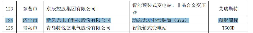 近日,從山東省質(zhì)量評(píng)價(jià)協(xié)會(huì)官網(wǎng)發(fā)布的《關(guān)于2018年度山東名牌產(chǎn)品認(rèn)定結(jié)果的公告》魯質(zhì)協(xié)字〔2018〕8號(hào)中獲悉,新風(fēng)光電子科技股份有限公司(以下簡(jiǎn)稱新風(fēng)光公司)生產(chǎn)的動(dòng)態(tài)無(wú)功補(bǔ)償裝置(SVG)被認(rèn)定為2018年度“山東名牌”產(chǎn)品。