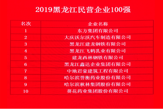 (中地君豪榮登2019黑龍江民營企業(yè)第7名)