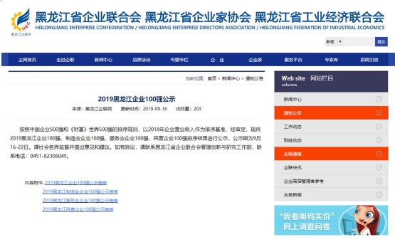 2019黑龍江省民營企業(yè)100強的評選,經(jīng)由黑龍江省企業(yè)聯(lián)合會、黑龍江省企業(yè)家協(xié)會、黑龍江省工業(yè)經(jīng)濟聯(lián)合考核,并通過官方網(wǎng)站向社會公示,同時于9月24—25日在黑龍江省雙鴨山市舉辦發(fā)布儀式,規(guī)格之高,前所未有,不僅成為外界透視黑龍江各企業(yè)發(fā)展態(tài)勢的風向標,更成為佼佼者實力PK的競技場。