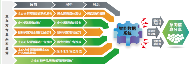 除了傳統(tǒng)的線下展會推廣,2020年主辦方還將通過整合企業(yè)產(chǎn)品的優(yōu)質(zhì)信息及活動內(nèi)容素材,在全年分三階段(展前,展中,展后)向各營銷渠道觸達(dá)的專業(yè)買家數(shù)據(jù)資源進(jìn)行持續(xù)的整合營銷攻勢,以激發(fā)潛在目標(biāo)買家對于企業(yè)的關(guān)注和興趣,從而產(chǎn)生更多互動意向,最終幫助企業(yè)實(shí)現(xiàn)營銷效果的提升,獲取更多意向客戶信息。