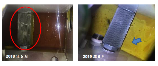 經(jīng)過13個月的使用,美孚DTE? 26 UT長效液壓油的各項理化指標正常,磨損金屬一直維持較低水平,預(yù)計換油周期可延長至原來的2倍(即4年);油箱內(nèi)部和油濾均比換油前更加干凈,系統(tǒng)清潔性大幅提升,濾芯更換減少。由此可見,美孚DTE? 26 UT長效液壓油不僅從而有效改善了設(shè)備的潤滑狀況、降低了停機時間,最終幫助企業(yè)降低了成本,提升了經(jīng)濟效益。