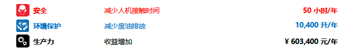 最終,通過使用美孚DTE? 26 UT長效液壓油和美孚?優(yōu)釋達?專業(yè)服務(wù),東麗公司的注塑機液壓系統(tǒng)得到明顯的改善,設(shè)備人員平均每年可以減少設(shè)備接觸時間50小時[ 東麗公司擁有100臺注塑機,以前每年每臺注塑機更換濾芯2次,更換美孚DTE? 26 UT后每年每臺注塑機濾芯更換1次,設(shè)備人員每次因更換濾芯所需時間為0.5小時,因此每年可減少員工與設(shè)備接觸時間50小時。],同時減少10,400升廢油的產(chǎn)生[ 以前一年一臺注塑機消耗2桶潤滑油,換油后一年一臺注塑機消耗1桶潤滑油,每桶容量208升,經(jīng)計算,每年總計可減少10,400升廢油產(chǎn)生。],并實現(xiàn)每年增加人民幣603,400元的經(jīng)濟效益[以前潤滑油的單位成本為22元/升,現(xiàn)潤滑油單位成本為24元/升,每年一臺注塑機消耗1.5桶潤滑油,經(jīng)計算每年可減少潤滑油采購成本166,400元。每年每臺注塑機可減少員工換油工時1.5小時,每小時每臺注塑機可減少停機生產(chǎn)損失2,500元,每年一共可減少因換油帶來的停機損失375,000元。以前每年每臺注塑機濾芯更換數(shù)量為1個,現(xiàn)在每年每臺注塑機濾芯更換數(shù)量為0.5個,濾芯采購成本為120元/個,因此每年一共可減少濾芯采購成本6,000元。??松梨诠炯肮こ處熋磕隇闁|麗公司提供技術(shù)服務(wù)次數(shù)至少8次(包括系統(tǒng)檢查、油樣檢測、培訓(xùn)和研討會等形式),每次可為東麗公司在改善設(shè)備潤滑、提高潤滑管理水平等方面帶來7,000元的價值,因此每年埃克森美孚可為東麗公司帶來56,000元的服務(wù)效益。經(jīng)計算,在更換美孚DTE? 26 UT后,東麗公司每年可增加收益人民幣166,400+375,000+6,000+56,000=603,400元。]。