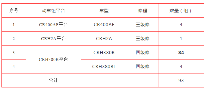 2020年動(dòng)車組高級(jí)修·第一次招標(biāo)中標(biāo)結(jié)果