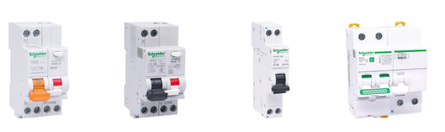 施耐德電氣A型漏電保護(hù)斷路器(從左至右分別為:Acti 9、Multi 9、Easy 9以及Resi 9系列)