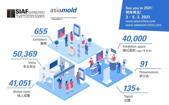 SIAF廣州國(guó)際工業(yè)自動(dòng)化技術(shù)及裝備展覽會(huì)及同期Asiamold廣州國(guó)際模具展覽會(huì),在廣州中國(guó)進(jìn)出口商品交易會(huì)展館舉辦,總面積達(dá) 4萬平方米。兩場(chǎng)展會(huì)共迎來655家參展商,參觀入場(chǎng)總數(shù)達(dá)50,369,線上直播觀展總數(shù)達(dá)41,051人次。涵蓋多種智能工業(yè)自動(dòng)化解決方案、模具制造、3D打印、金屬加工、鑄造、壓鑄、激光及軸承技術(shù),為制造業(yè)提供一站式采購平臺(tái),助力全球眾多企業(yè)與生產(chǎn)線恢復(fù)業(yè)務(wù)。