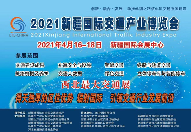 2021新疆國(guó)際交通產(chǎn)業(yè)博覽會(huì),作為西北最大交通展、2021年在新疆首個(gè)大規(guī)模開展的專業(yè)類展會(huì),將在4月16-18日在新疆國(guó)際會(huì)展中心盛大開幕,展會(huì)為期3天,展會(huì)面積達(dá)2萬(wàn)平方米,將邀請(qǐng)到3M、浙江大華、河南中天、開源路橋、雄帝科技、黑馬科技、北京鑫華源、??低暤葒?guó)內(nèi)外800家知名企業(yè)參展,預(yù)計(jì)15000名西北五省及中亞地區(qū)專業(yè)觀眾到場(chǎng)參觀與采購(gòu)。展區(qū)共設(shè)置“交通建設(shè)、綠色交通、智能交通、交通安全、鐵路與軌道交通、交通大數(shù)據(jù)、筑路機(jī)械及養(yǎng)護(hù)、智能停車與立體停車庫(kù)”八大主題展區(qū),展會(huì)同期舉辦“一帶一路”西北智能交通產(chǎn)業(yè)發(fā)展大會(huì)高峰論壇,全面助力自治區(qū)交通強(qiáng)國(guó)建設(shè)邁向新征程,并為更多優(yōu)質(zhì)企業(yè)搶占絲路沿線國(guó)家及中、西亞市場(chǎng)商機(jī)提供平臺(tái)。