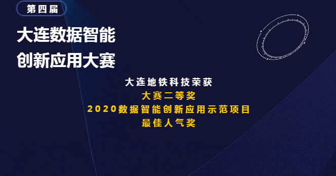 經(jīng)過本屆大賽初復(fù)賽層層專家評(píng)審、決賽路演和現(xiàn)場答辯,大連地鐵科技有限公司憑《交通出行客流分析創(chuàng)新應(yīng)用方案》,從102支參賽團(tuán)隊(duì)中脫穎而出,榮獲大賽二等獎(jiǎng)、2020數(shù)據(jù)智能創(chuàng)新應(yīng)用示范項(xiàng)目稱號(hào)、最佳人氣獎(jiǎng)。