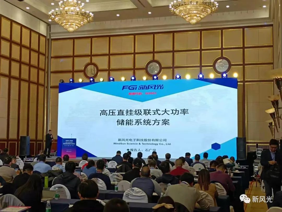 新風(fēng)光市場(chǎng)部資深市場(chǎng)技術(shù)顧問石廣保在儲(chǔ)能系統(tǒng)集成專場(chǎng)會(huì)議上做了《高壓直掛級(jí)聯(lián)式大功率儲(chǔ)能系統(tǒng)方案》的主題演講。