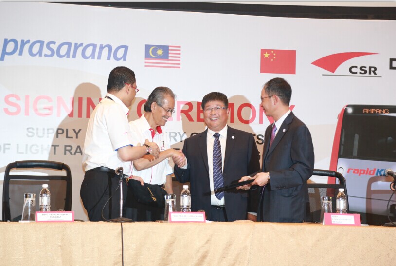 On Oct. 21 in Kuala Lumpur, Capital of Malaysia, the leaders of Chinese and Malaysian companies shook hands firmly at the Contract Signing Ceremony of supplying 30 LRVs for Malaysia Ampang Line, wherein 9 LRVs will be localized in Kuala Lumpur,Malaysia.