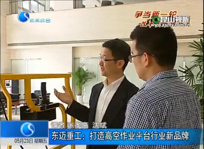 昆山市電視臺于5月23日和10月26日對東邁重工進(jìn)行了2次采訪報導(dǎo)。采訪現(xiàn)場也為記者演示國際首臺的純電動(無液壓)自行走柱式高空作業(yè)平臺,由于能源、轉(zhuǎn)向、驅(qū)動、升降系統(tǒng)全部采用蓄電池,沒有任何液壓油,同時它小巧、精致、實用、方便,可以隨意進(jìn)出電梯和辦公室門輕松完成工作任務(wù),對于缺乏相關(guān)技能技術(shù)的人員只需短短幾分鐘即可掌握要領(lǐng)。此產(chǎn)品在國際上尚屬首例,對于醫(yī)藥廠、食品加工廠等對環(huán)境要求較高的場所尤為適用。