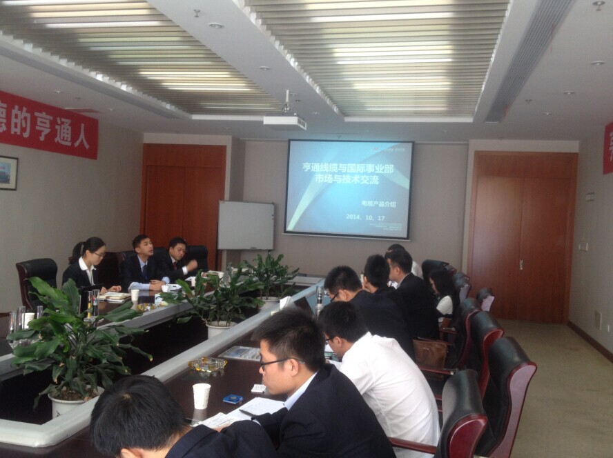 2014年10月17日上午,亨通線纜營銷條線與國際事業(yè)部的技術(shù)交流會在亨通光電線纜產(chǎn)業(yè)園三樓3105會議室成功召開。亨通線纜營銷條線副總助理尹斌、技術(shù)部經(jīng)理崔久德、商務(wù)部經(jīng)理陳夏裕等公司各級領(lǐng)導(dǎo)及國際事業(yè)部大洋洲、美洲區(qū)總監(jiān)周潼等各大區(qū)銷售人員出席了本次交流會。