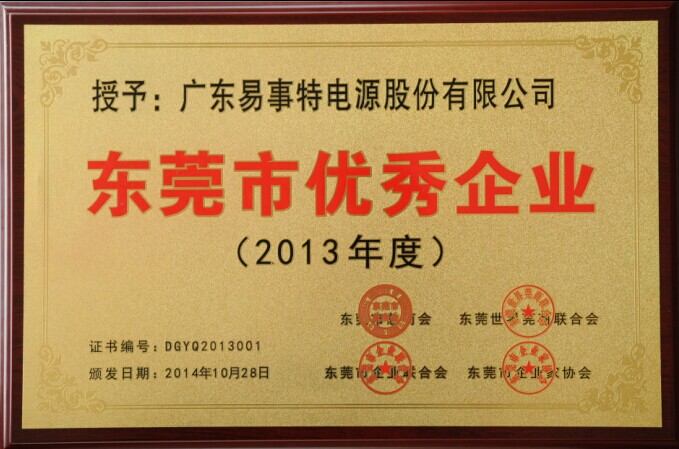 10月28日,2014年東莞市企業(yè)家活動日暨“2013年度優(yōu)秀企業(yè)、優(yōu)秀企業(yè)家評選表彰大會”活動在會展國際大酒店隆重舉行,市委副書記、市長袁寶成、省企業(yè)聯(lián)合會相關(guān)領(lǐng)導(dǎo)參加了表彰活動。易事特憑借領(lǐng)先的技術(shù)實(shí)力、高速增長的經(jīng)營業(yè)績和顯著的品牌影響力,榮獲2013年度“東莞市優(yōu)秀企業(yè)”稱號,充分肯定了易事特在東莞市經(jīng)濟(jì)社會發(fā)展中的地位和作用。