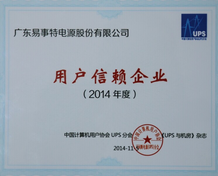 近日,2014 UPS與數(shù)據(jù)中心技術(shù)發(fā)展論壇暨《UPS與機(jī)房》雜志年會(huì)在北京成功舉行。國(guó)內(nèi)電源和IDC數(shù)據(jù)中心機(jī)房行業(yè)龍頭企業(yè)——廣東易事特電源股份有限公司喜獲“2014年度用戶信賴企業(yè)”獎(jiǎng)。