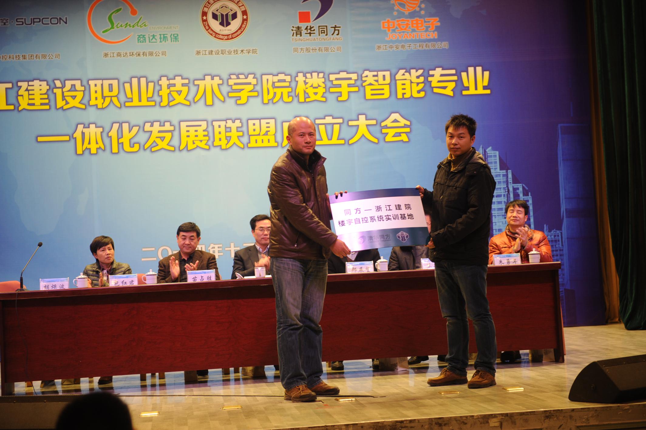 浙江建設(shè)職業(yè)技術(shù)學(xué)院是浙江省唯一一所公辦建設(shè)類全日制高等職業(yè)學(xué)院,聯(lián)盟成立大會在該校圖書館報告廳舉行,以同方為代表的23家企業(yè)代表和7所建設(shè)類專業(yè)背景中職院校代表參加會議。