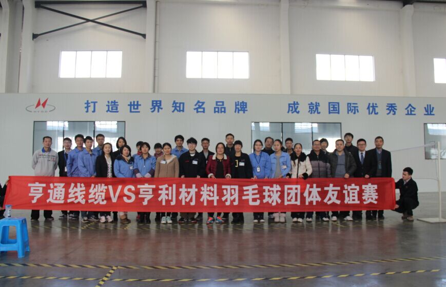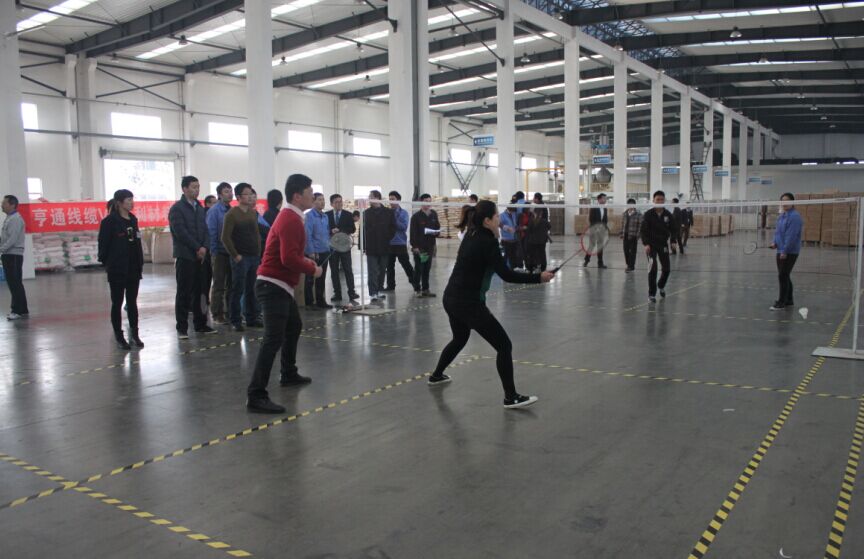 1月8日,由江蘇亨通線纜科技有限公司(簡(jiǎn)稱:亨通線纜)和蘇州亨利通信材料有限公司(簡(jiǎn)稱:亨利材料)共同舉辦的“亨通線纜VS亨利材料羽毛球團(tuán)體友誼賽”在亨利材料交聯(lián)料車間正式開賽。本次比賽亨通線纜與亨利材料各派出四隊(duì)進(jìn)行角逐。