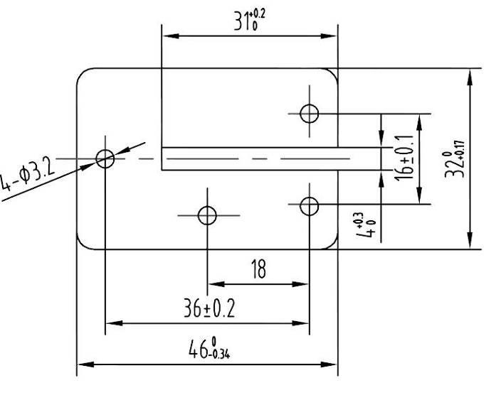 安全型繼電器重錘片如圖2所示,材料為冷軋鋼板Q235-A,零件外觀及技術(shù)要求如下:①零件表面不允許有劃痕、拉傷、點(diǎn)狀墊傷、無(wú)毛刺;②鉚接安裝后零件的外觀應(yīng)平整,一致性精度要求高;③要求零件生產(chǎn)成本低,模具便于拆卸、維修、刃磨方便,刃磨一次沖次需達(dá)到100萬(wàn)次。④生產(chǎn)批量大,有A、B兩種規(guī)格,厚度分別為1mm和1.5mm,每臺(tái)繼電器疊鉚數(shù)量大致在3~8片,年產(chǎn)量36萬(wàn)臺(tái)。⑤要求利用現(xiàn)有德國(guó)進(jìn)口RVD40-720NS型高速自動(dòng)壓力機(jī)(含校平、自動(dòng)送料機(jī)構(gòu))設(shè)計(jì),最大沖裁噸位為40噸,模具允許最大長(zhǎng)度720mm ,模具閉合高度為340mm。