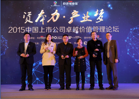 2015中國上市公司卓越價值管理論壇由中國三大經(jīng)濟類報紙之一——《經(jīng)濟觀察報》主辦,以“資本力 產(chǎn)業(yè)夢”為主題,旨在深度探討如何對上市公司做好價值管理,深入分析上市公司如何利用資本市場平臺完成合法合規(guī)價值管理的渠道和路徑。監(jiān)管層代表、上市公司、投行、研究機構(gòu)、私募股權(quán)基金及證券咨詢行業(yè)的精英應(yīng)邀出席了本次論壇。在客觀全面分析2014年上市公司價值維護數(shù)據(jù)基礎(chǔ)上,結(jié)合經(jīng)濟觀察研究院調(diào)研報告,主辦方評選出價值管理綜合表現(xiàn)前十名的上市公司,并舉行了隆重的頒獎典禮。