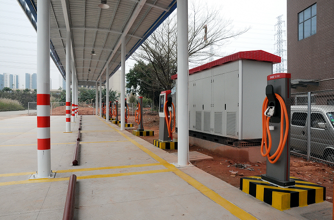 與傳統(tǒng)加油站相比,電動(dòng)汽車充電站具有可與停車場(chǎng)、停車位結(jié)合建設(shè)的優(yōu)點(diǎn),無需額外用地。該電動(dòng)汽車智能充電站位于東莞市東城汽車客運(yùn)站內(nèi),利用客運(yùn)站原有土地建造,占地面積400平方米,建設(shè)有10個(gè)充電樁,可同時(shí)滿足10臺(tái)電動(dòng)公交車的快速充電需求。未來投入使用后,在滿足純電動(dòng)公交車的充電需求外,可向私人電動(dòng)小汽車開放,提供直流快充服務(wù)。