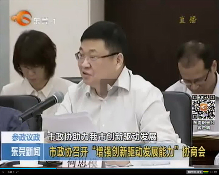 2015年4月16日,東莞市政協(xié)召開“增強創(chuàng)新驅(qū)動發(fā)展能力”協(xié)商座談會。東莞市政協(xié)常委、民建市委副主委、公司董事長何思模教授應(yīng)邀出席會議并為東莞增強創(chuàng)新驅(qū)動發(fā)展能力建言獻策,得到與會各位領(lǐng)導的高度肯定。