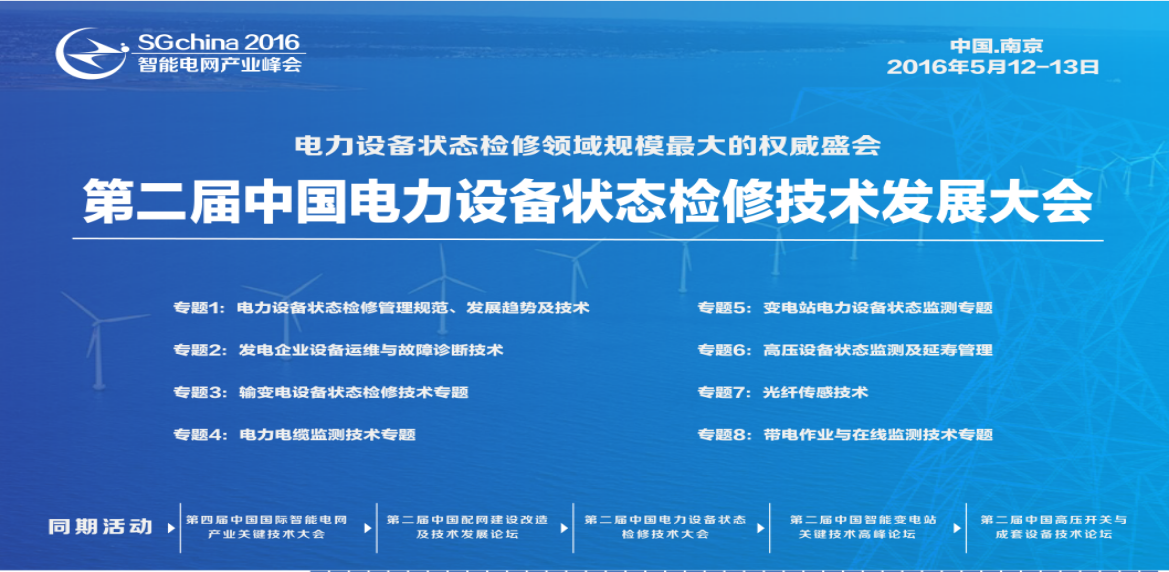 2016第二屆中國電力設備狀態(tài)檢修大會將于5月12至13日在南京舉辦, 此次大會由中國電器工業(yè)協(xié)會攜手中國電器工業(yè)協(xié)會智能電網(wǎng)設備工作委員會和《智能電網(wǎng)產(chǎn)業(yè)觀察》雜志社共同主辦,upp上電傳媒承辦。